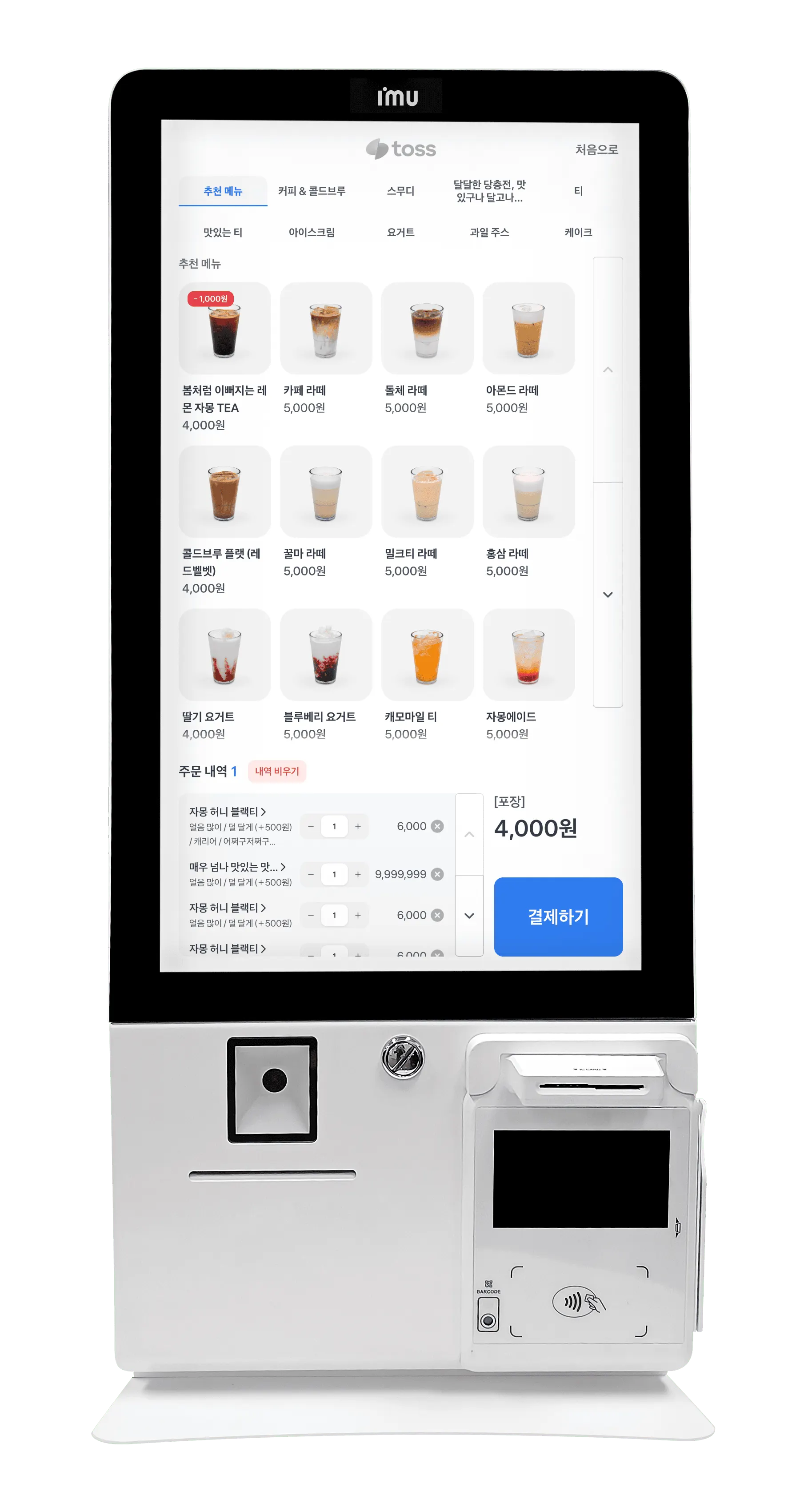 A. 맞아요. 토스 프론트라는 카드 단말기를 키오스크 모드로 전환할 수 있어요. 이 키오스크 모드도 많은 사장님들이 사용하고 계세요. 그럼에도 불구하고 여전히 큰 사이즈(21.5인치)의 키오스크를 선호하는 사장님들이 계세요. 이러한 니즈가 토스가 매장에 진입할 수 있는 또 하나의 진입점이라고 생각해서 토스 키오스크를 만들게 됐어요.